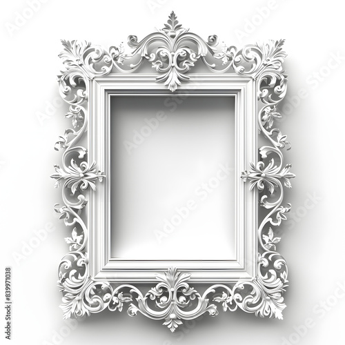 3D fancy photo frame on white background AI generated