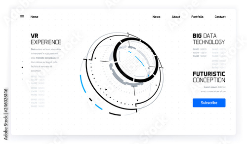 3D Futuristic Technology HUD Interface Elements Set. Big Data, Virtual Reality, Artificial Intelligence, Hologram Screen, Science Fiction, Security System. Vector EPS 10 Illustration