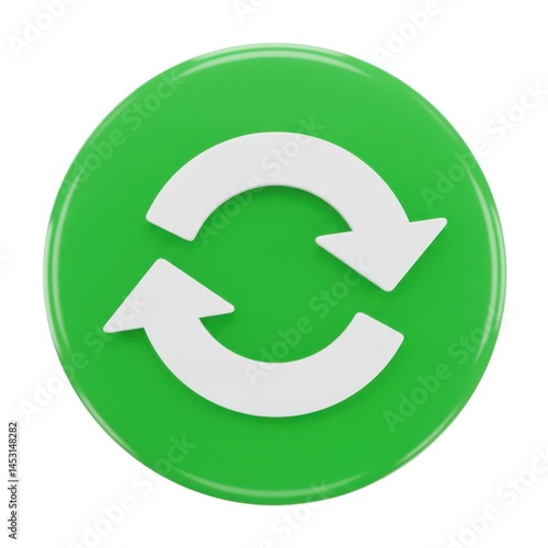 3D Green circle with arrows icon on white background