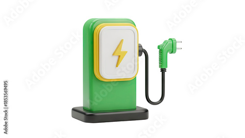 3D Green Electric Vehicle Charging Station with Lightning Bolt Icon
