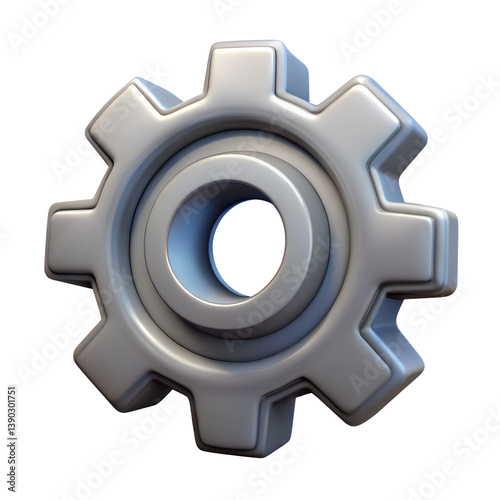 3D Grey Gear Settings Icon – Cartoon Plastic Style on a Transparent Background