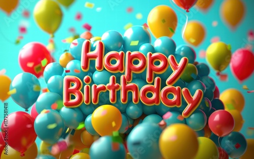 3D Happy Birthday text on a bright background