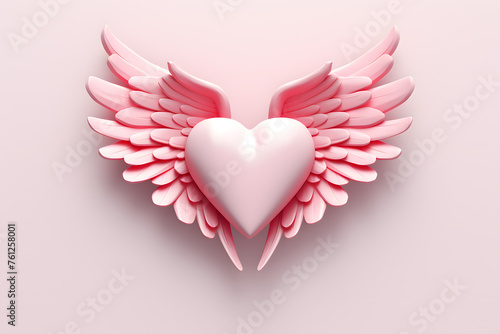 3D heart with wings on pastel pink background. Valentine's Day concept