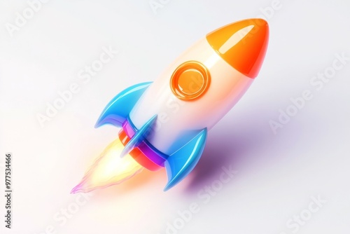 3D icon of a rocket, simple design, blue and orange gradient color with a white background.