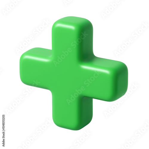 3d icon of a vibrant green plus icon with smooth rounded edges, isolated on a transparent background
