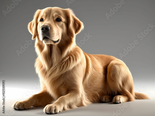 3D Illustration Art, Closeup Shot of A Golden Retriever Dog, Isolated over a Background