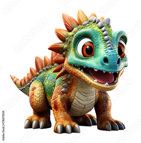 3D illustration cartoon animal dinosaur, cute dino character toy, with transparent background, generative ai