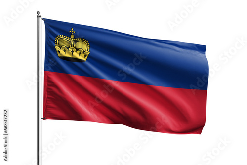 3d illustration flag of Liechtenstein. Liechtenstein flag waving isolated on white background with clipping path. flag frame with empty space for your text.