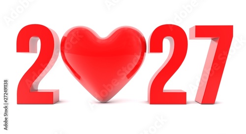 3d illustration of 2027 Text with heart