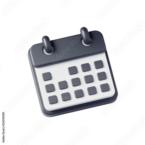3D illustration of a black and white desk calendar with a spiral binding, representing scheduling, planning, time management isolated on a transparent background.