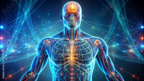 3D Illustration Of A Human Body Showing Nervous System And Brain Activity.