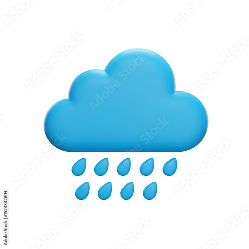 3D Illustration of a Raining Cloud in Blue against Transparent Backdrop