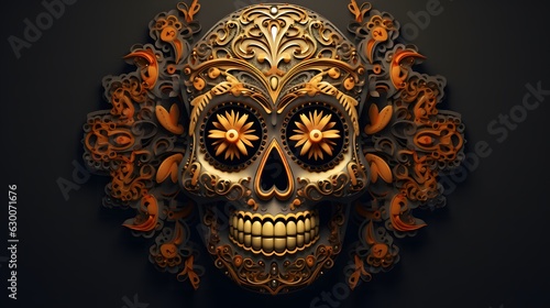 3d illustration of sugar skull with floral ornament on black background. Sugar Skull (Calavera) to celebrate Mexico's Day of the Dead (Dia de Los Muertos)