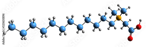 3D image of lauryl dimethyl glycinebetaine skeletal formula - molecular chemical structure of Surfactant isolated on white background