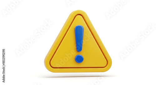3D image Yellow Warning Sign with Blue Exclamation – Alert Symbol for Caution, Safety, Interface, and Hazard Awareness.