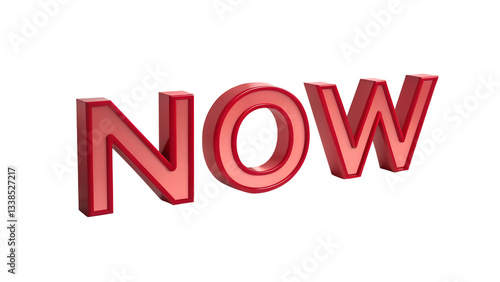 3D Letter NOW in Fiery Red on a Transparent Background