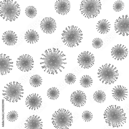 3d medical illustration with covid-19 image. Background image with black and white virus under microscope.