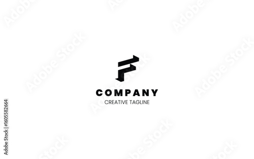 3D monochrome logo design template with letter F in isometric bottom left view