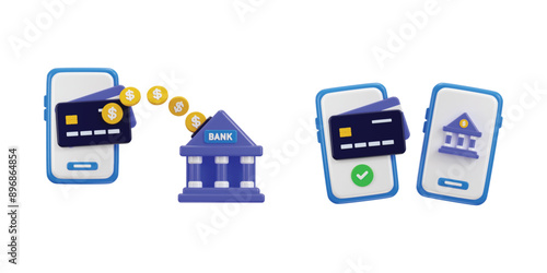 3D Online money transfer icon on online credit card wallet with for financial bank transaction, money online transaction, online payment, business finance, transfer on mobile bank icon set