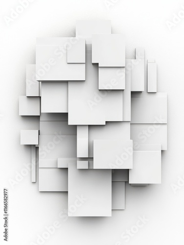 3d overlapping rectangles isolated over a white background - side view