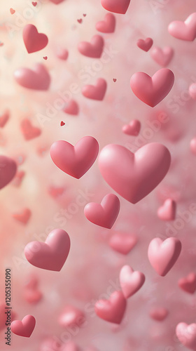 3D pastel pink Valentines Day background. Heart shapes
