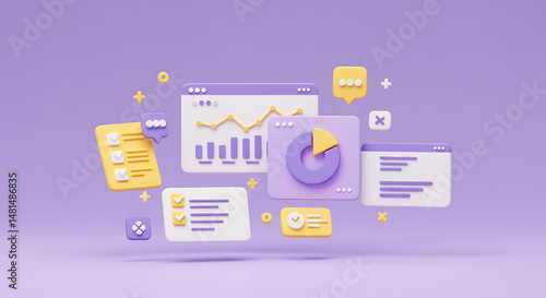 3D Pastel UI Elements: Data Analysis & Communication Icons