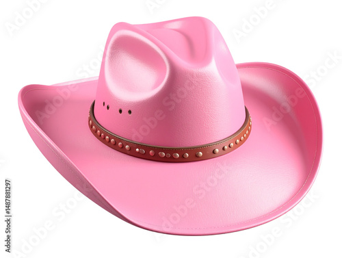 3D pink cowboy hat isolated on a transparent background, cutout