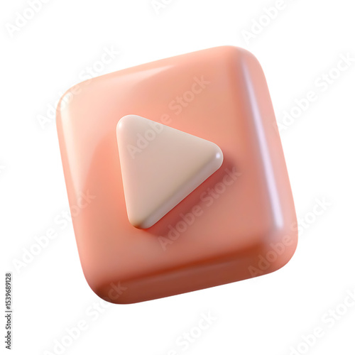 3d play button icon peach square isolated on transparent background