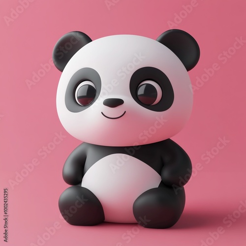 3D Playful Panda Icon: Adorable Plush Toy Illustration Logo