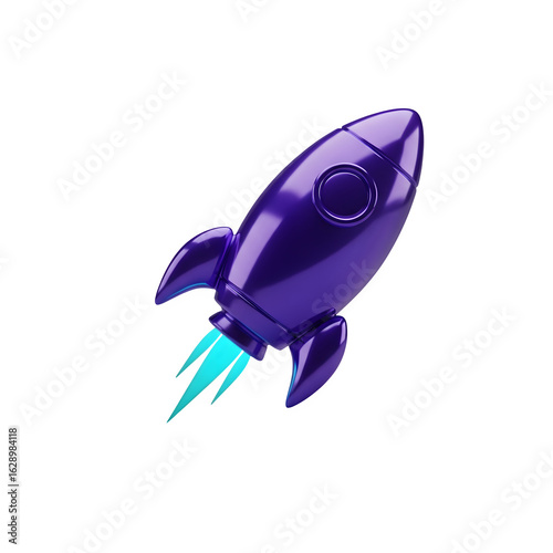 3D Purple Cartoon Rocket Ship - Space Exploration, Startup Launch, Kids Fantasy, Innovation, Adventure Journey, Uplifting Success Icon