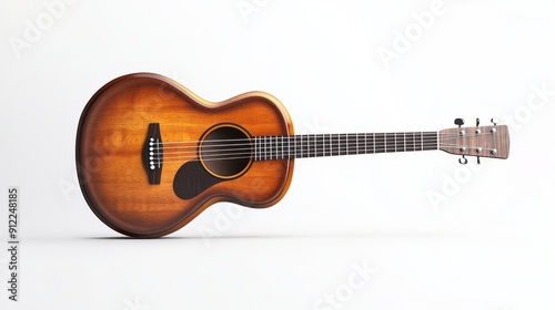 3D Realistic Brown Guitar with Detailed Strings - Isolated Image