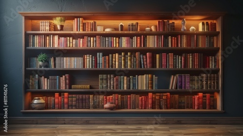 3D realistic image of a bookcase, clean lighting, isolated on background