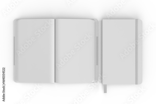 3D realistic of hardcover notebooks with elastic bands and ribbon bookmarks isolated. Blank mockup template for a publication design, branding, diary, journal, booklet and creative projects.