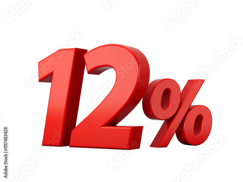 3d Red 12% Twelve Percent Sign on White Background 3d illustration