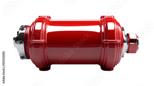 3D red fire hydrant with a glossy surface and bold industrial design, ideal for urban themes Isolated on white background