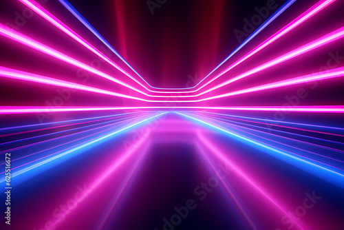3D Render neon rays blue and purple background Generative AI