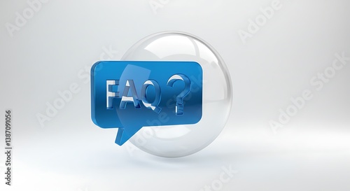3D Render of a Blue FAQ Speech Bubble on a Glass Sphere AI Generated