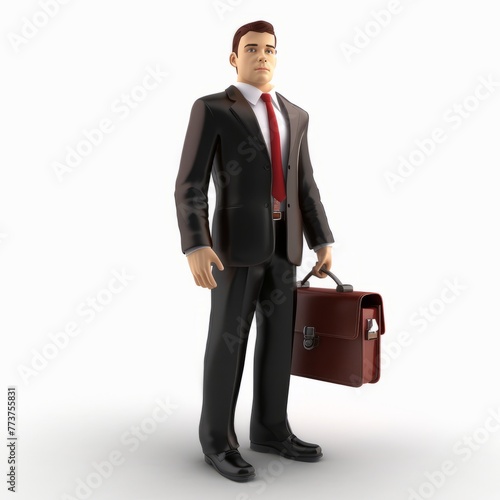 3D Render of a man in business attire standing proudly with a briefcase, on isolated white background, Generative AI