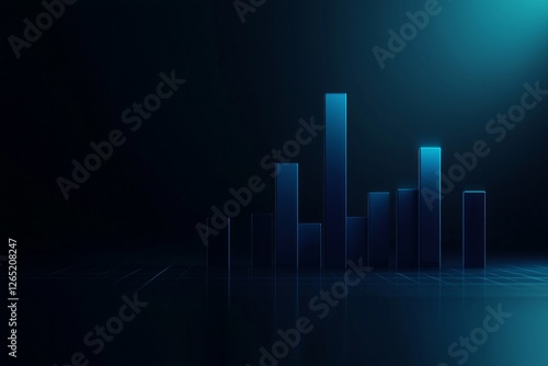 3D render of an abstract blue bar graph, simple dark background, minimalistic design