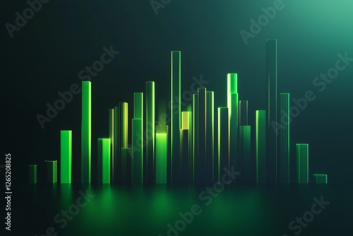 3D render of an abstract green bar graph, simple dark background, minimalistic design