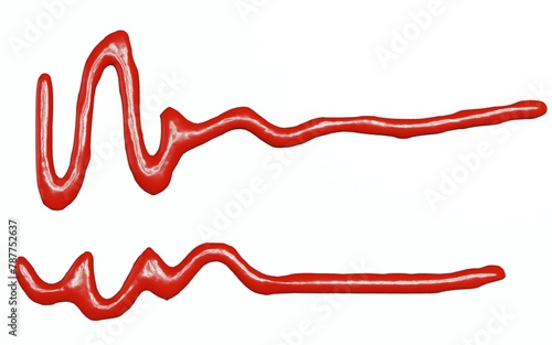 3d render of ketchup splatter strip and swirl top view for food or restaurant kitchen concept