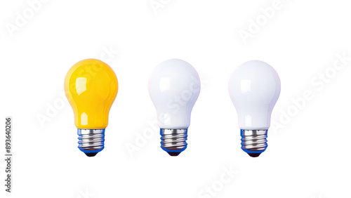3D Render of Three LED Bulb Row with One Different. Digital Equipment Created By Generative AI.