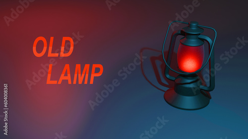 3d render old lantern or lamp with blue or red background illustration