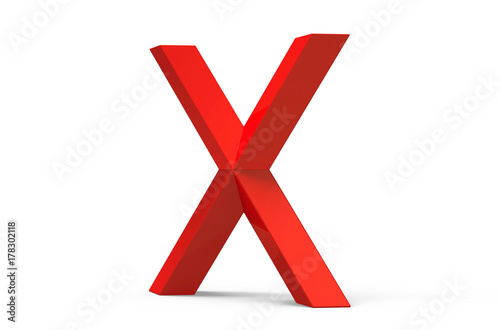 3D render red beveled alphabet X