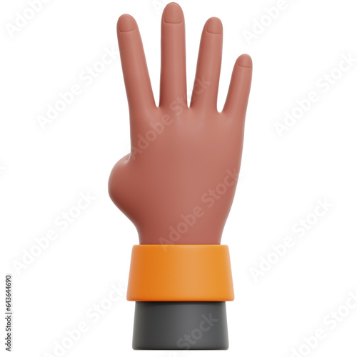 3D Render Showing Number Four Hand Gesture Transparent Illustration