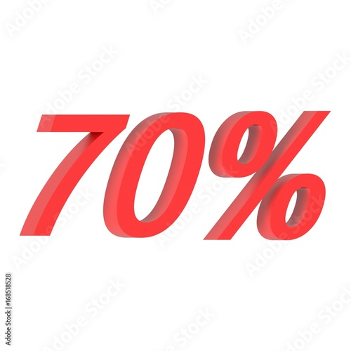 3D render text 70 percent of red a white background