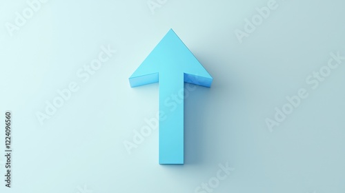 3D rendered blue arrow, angled upwards on a white surface.