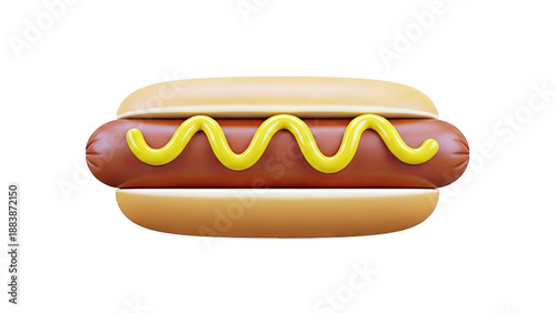 3D Rendered Hot Dog with Mustard