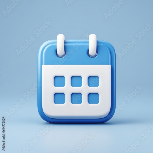 3D rendered, light-blue calendar icon. Simple, square, with white grid