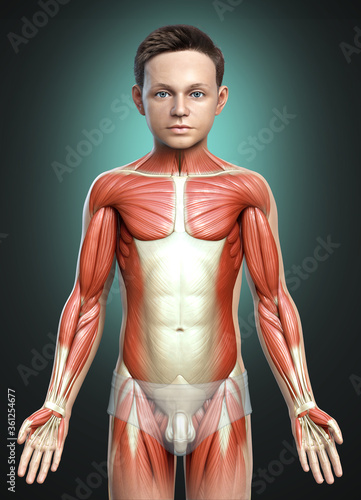 3d rendered medically accurate illustration of a young boy muscle system